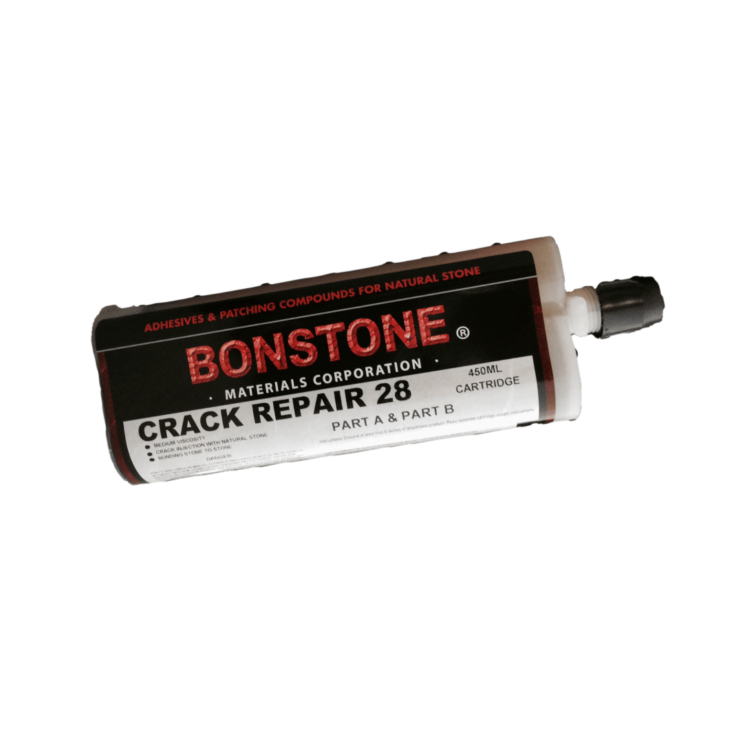 Crack Repair 28 is a medium viscosity epoxy cartridge system, which is generally used for injecting into horizontal wide cracks in stone. On vertical applications a capping compound should be used to seal the crack. We strongly suggest using a dual cartridge applicator gun when using this product.