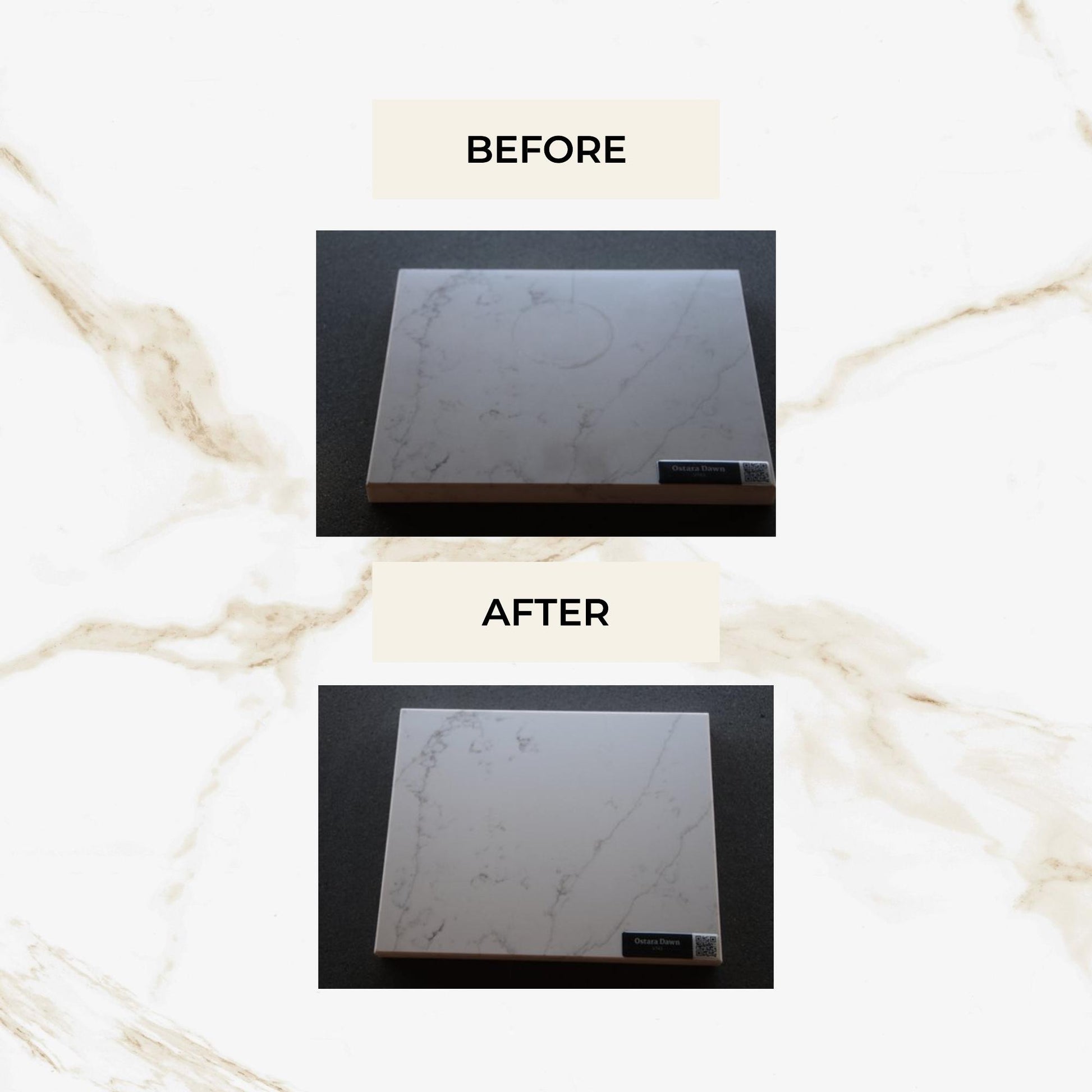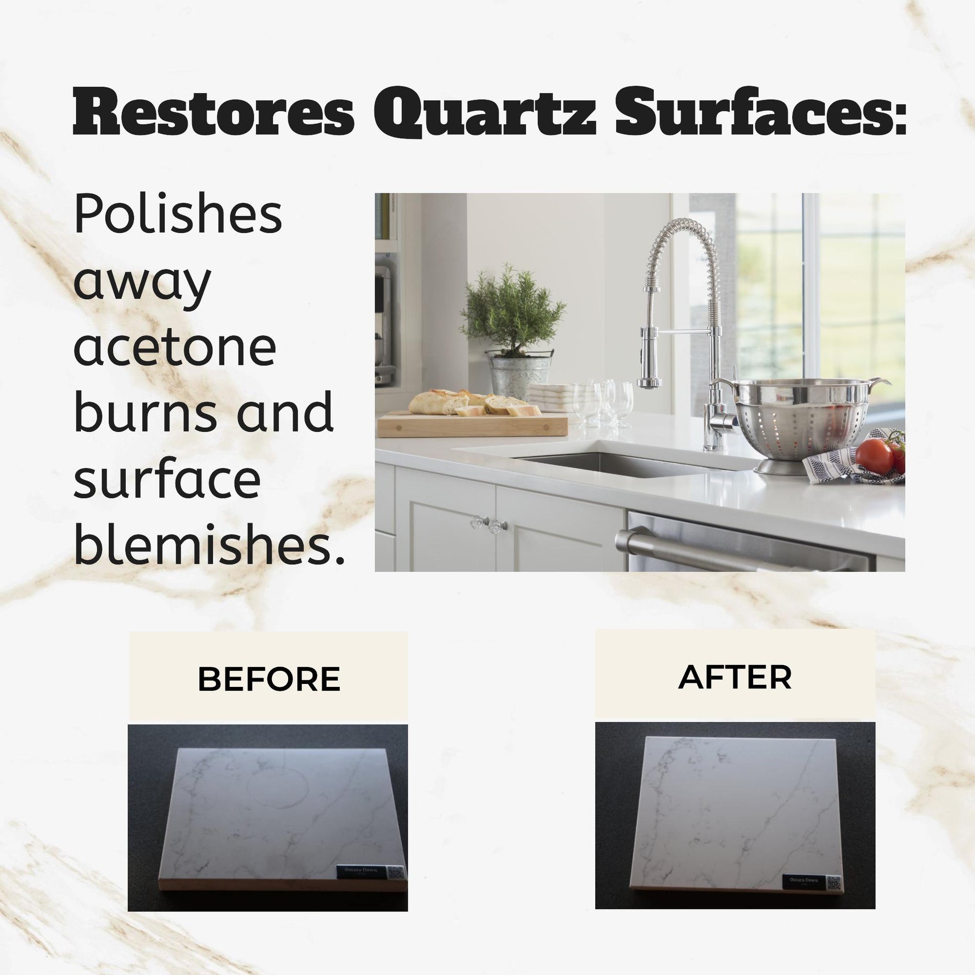 Restores Quartz Surfaces: Polishes away acetone burns and surface blemishes.