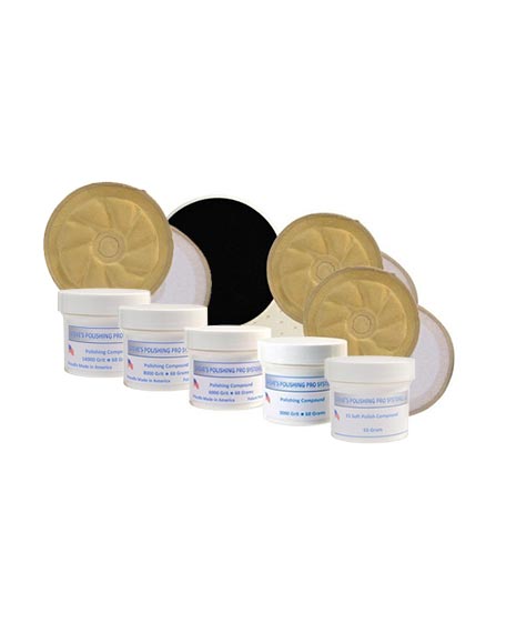 - 1 – each 68-gram jar of 3000, 6000, 8000, and 14000 grit compound