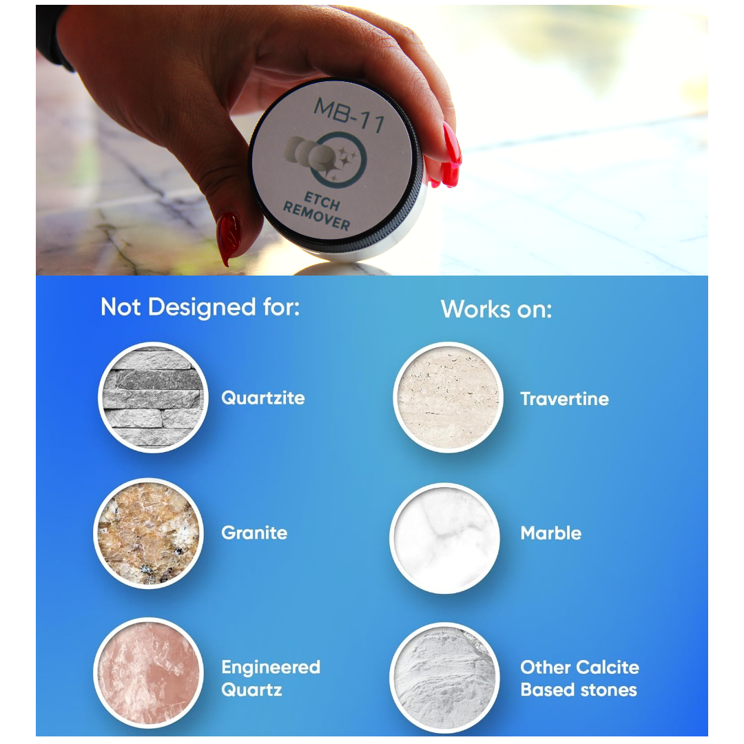 - ESSENTIAL CARE PRODUCT - Designed to use for natural stone surfaces and waters stains. Eliminates light to medium etching and light scratch patterns.