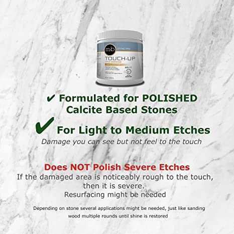 - UNIQUE POLISH MB-11 Touch Up - is designed for spot polishing of most water stains or rings from polished marble, travertine, and any other calcite-based stone.