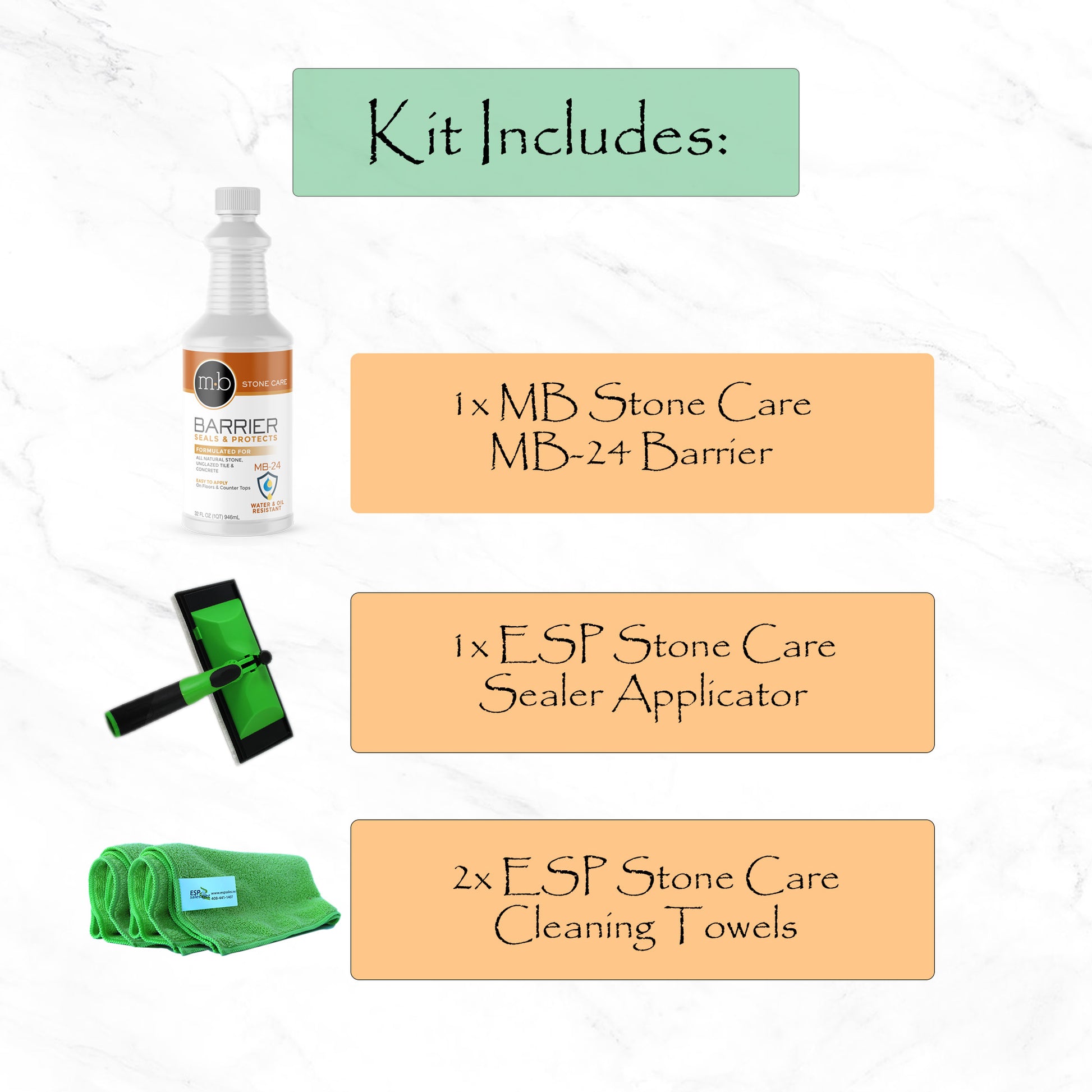 MB Stone Care Barrier Sealer Kit, 32 fl oz, Includes Applicator and Towels