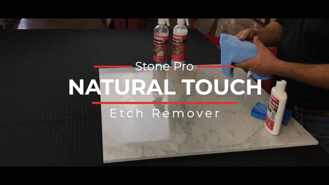 Etch marks, dull spots, and “water rings” can ruin the look of your marble or travertine countertops and floors. Natural Touch restores the damaged area to a beautiful polish. Natural Touch also removes light scratching and wear patterns.